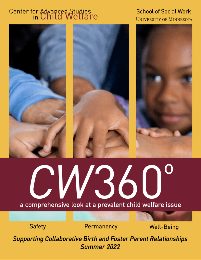 Kim, J. (2022). A brief history of foster care. CW360: Supporting collaborative birth and foster parent relationships. (Summer, 2022). University of Minnesota School of Social Work.