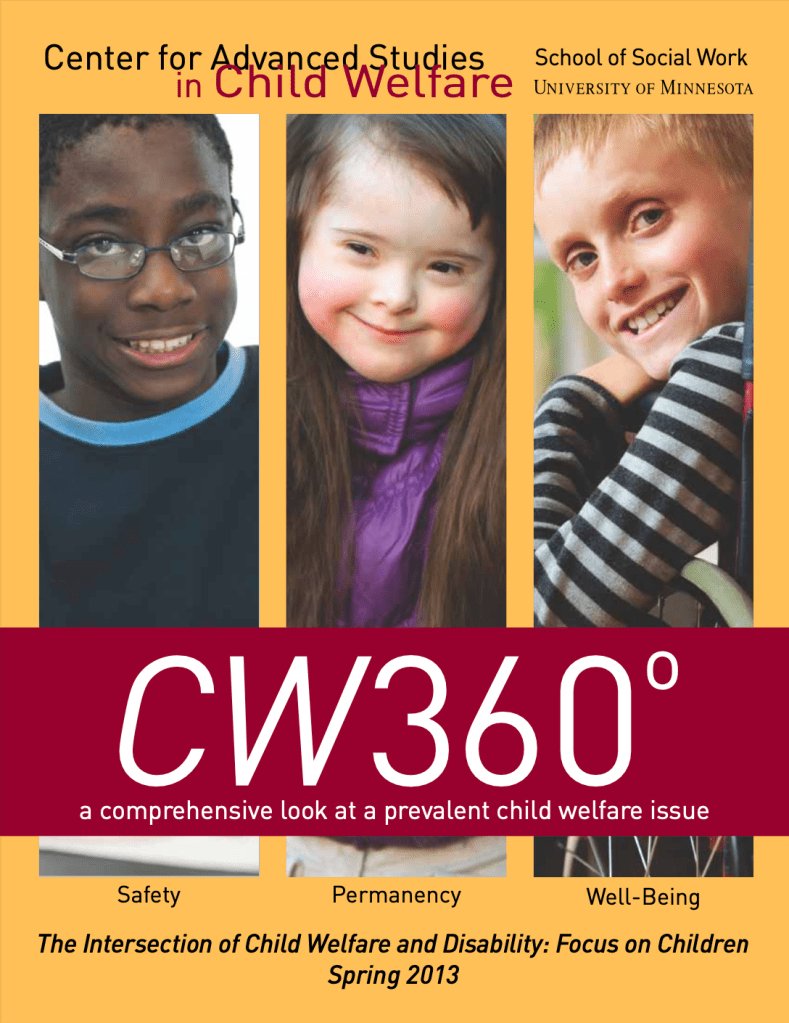 Kim, J.R. (2013). An overview of adoption for children with disabilities. CW360: The Intersection of child welfare and disability: Focus on children (Spring, 2013). University of Minnesota School of Social Work.