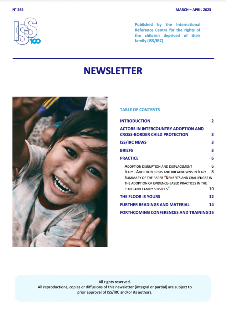 Kim, J. (2023). Adoption disruption and displacement. International Social Services Newsletter, Spring 2023.